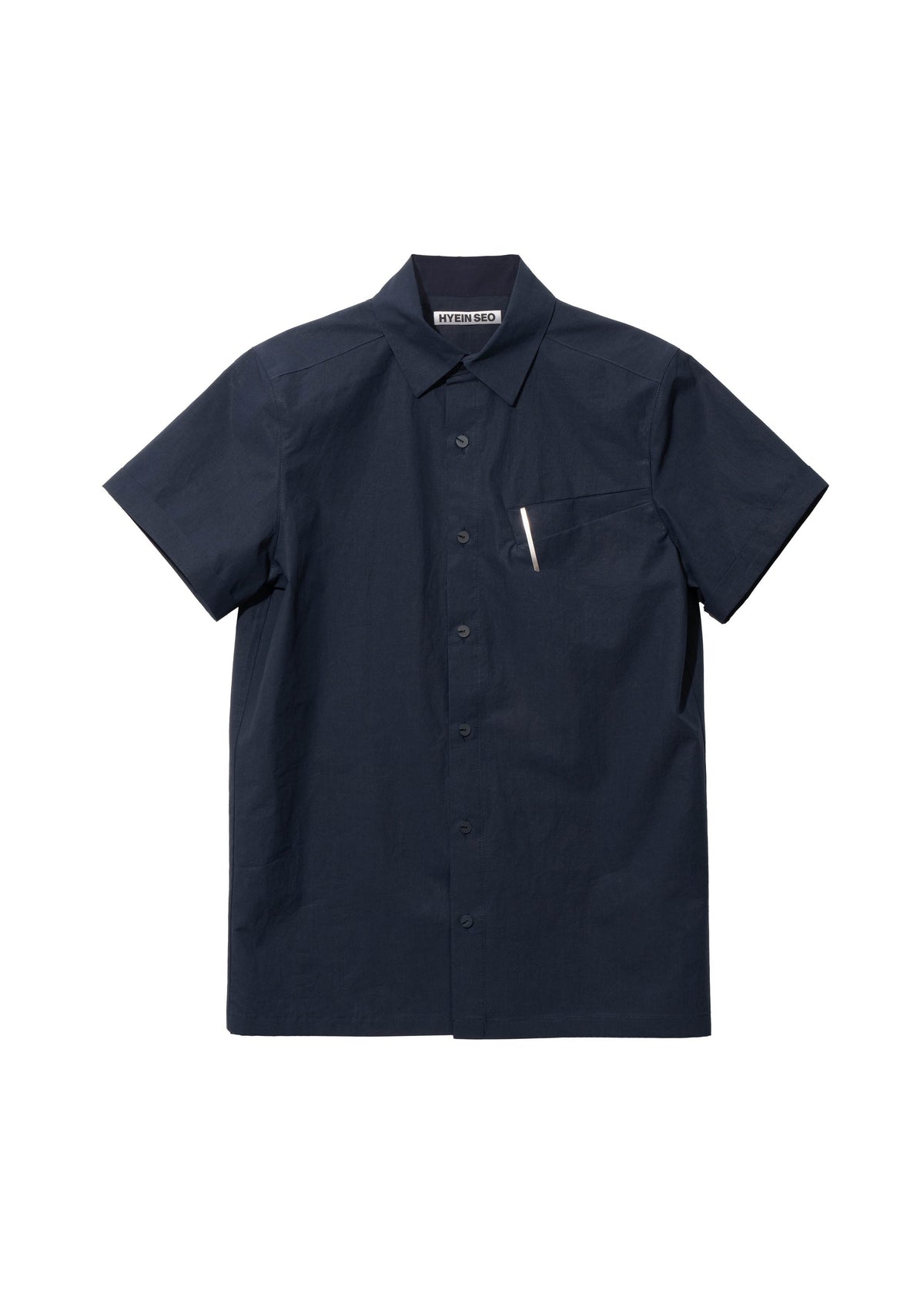 ダブルチェストポケットにロゴが刻印された真鍮ピン、ボタン留め<サイズ&フィット>