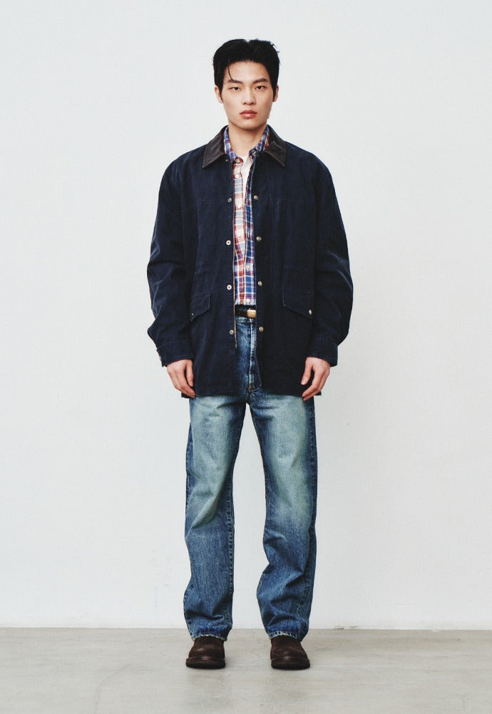 Leather Collar Garment Field Jacket (Faded Navy)