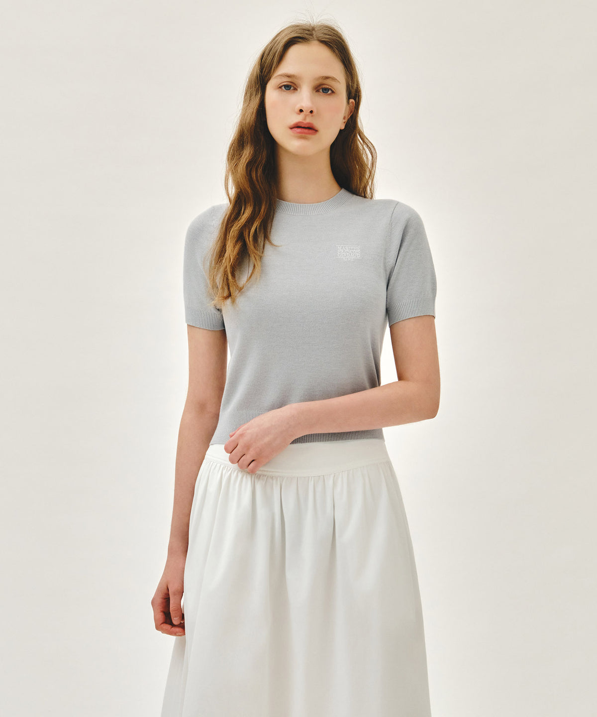 - Women's standard fit half sleeve knit pullover- Small Marite Francois Gerber logo embroidery on sitting chest