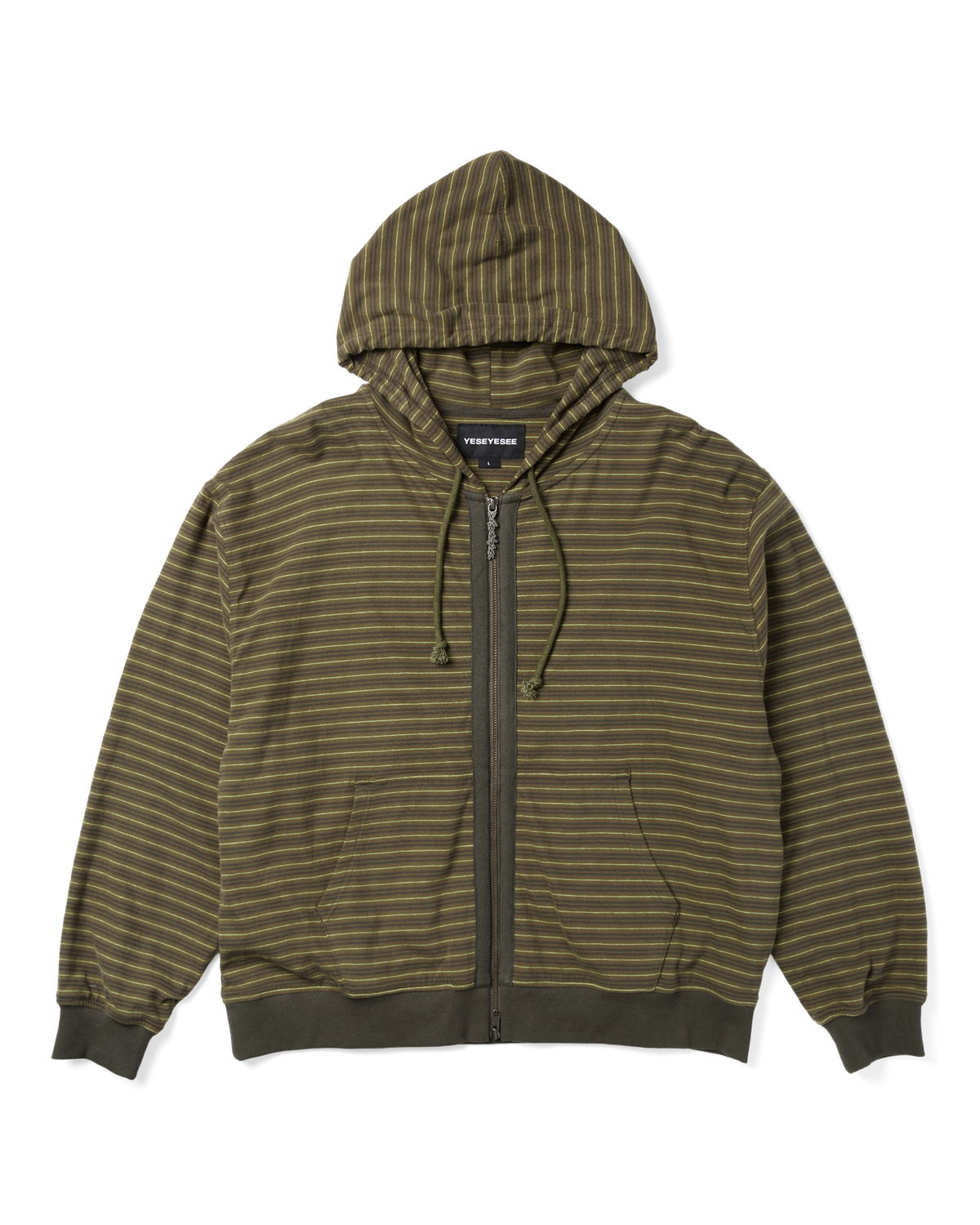 Y.E.S Stripe Single Zip-Up Hoodie (Khaki)