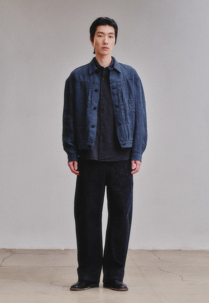 亚麻卡车司机夹克,半宽松版型带有天然褶皱的亚麻面料