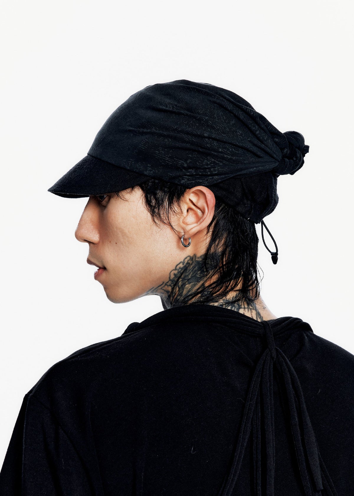 这款帽子以标志性的褶皱帽和结饰帽设计为基础,采用印花针织面料,并在后部延伸形成一个结。尺码与版型