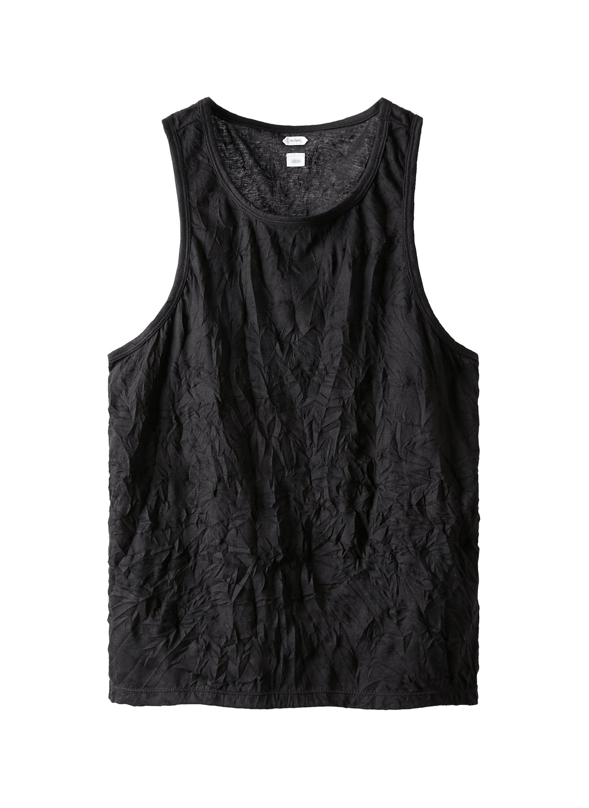 Natural creased fabricRibbed neckline and armholes